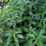 Vytrvalý plevel, vysoký 30–80 cm, s přímou, zpravidla nevětvenou lodyhou. Listy jsou bez palistů, řapíkaté, čepel vejčitá až eliptická, celokrajná, tmavě zelená.