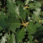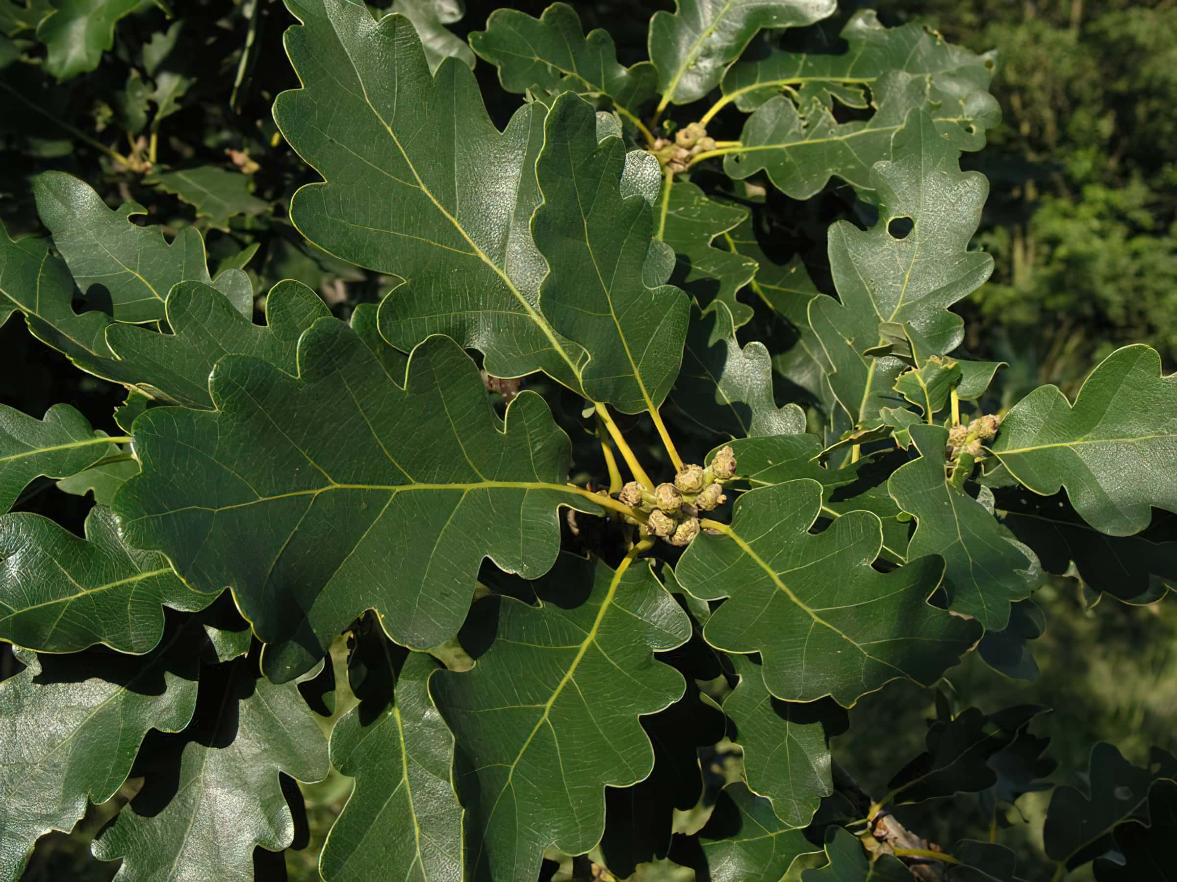 Opadavý, velmi statný strom, dorůstající výšky přes 35 m. Koruna značně klenutá, kmen přímý. Větve jsou přímé a příkře vystoupavé. Do středního stáří udržuje hladkou kůru, později má mělce popraskanou černošedou borku. Pupeny jsou protáhlejší a špičatější než u dubu letního. Listy 8–12 cm dlouhé a asi 5 cm široké, střídavě postavené, obvejčité, mělce laločnaté, poměrně pravidelné. Na rozdíl od listů dubu letního se jejich čepel k řapíku, který je 1–3 cm dlouhý, klínovitě zužuje.