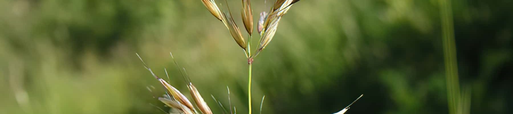 Vytrvalá, asi 50 až 150 cm vysoká tráva rostoucí v řídkých trsech. Stébla jsou přímá nebo poněkud rozložená, poměrně mohutná, hladká, s 3 až 5 tlustými kolénky. Listové pochvy jsou na hřbetní straně okrouhlé, rovněž hladké nebo pouze nepatrně drsné a řídce chlupaté. Jazýčky jsou až 3 mm dlouhé. Čepele jsou stejně jako listové pochvy intenzivně zelené, úzce zašpičatělé, ploché.