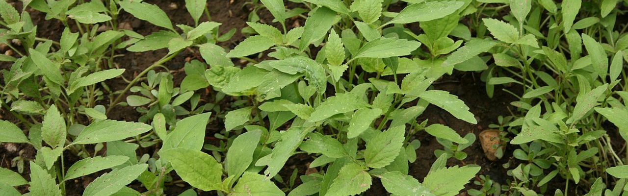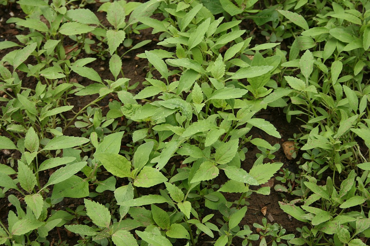 Je jednoletou bylinou s kůlovým kořenem s bohatě větvenými postranními kořeny. Lodyha je přímá, jednoduchá nebo větvená, šedozelená, většinou nachově naběhlá, lysá. Může dosahovat výšky až přes 3 m. Listy jsou dlouze řapíkaté. Čepel je vejčitá až srdčitá, až 17 cm dlouhá, po okraji zubatá, svrchu drsná, zespodu našedlá.