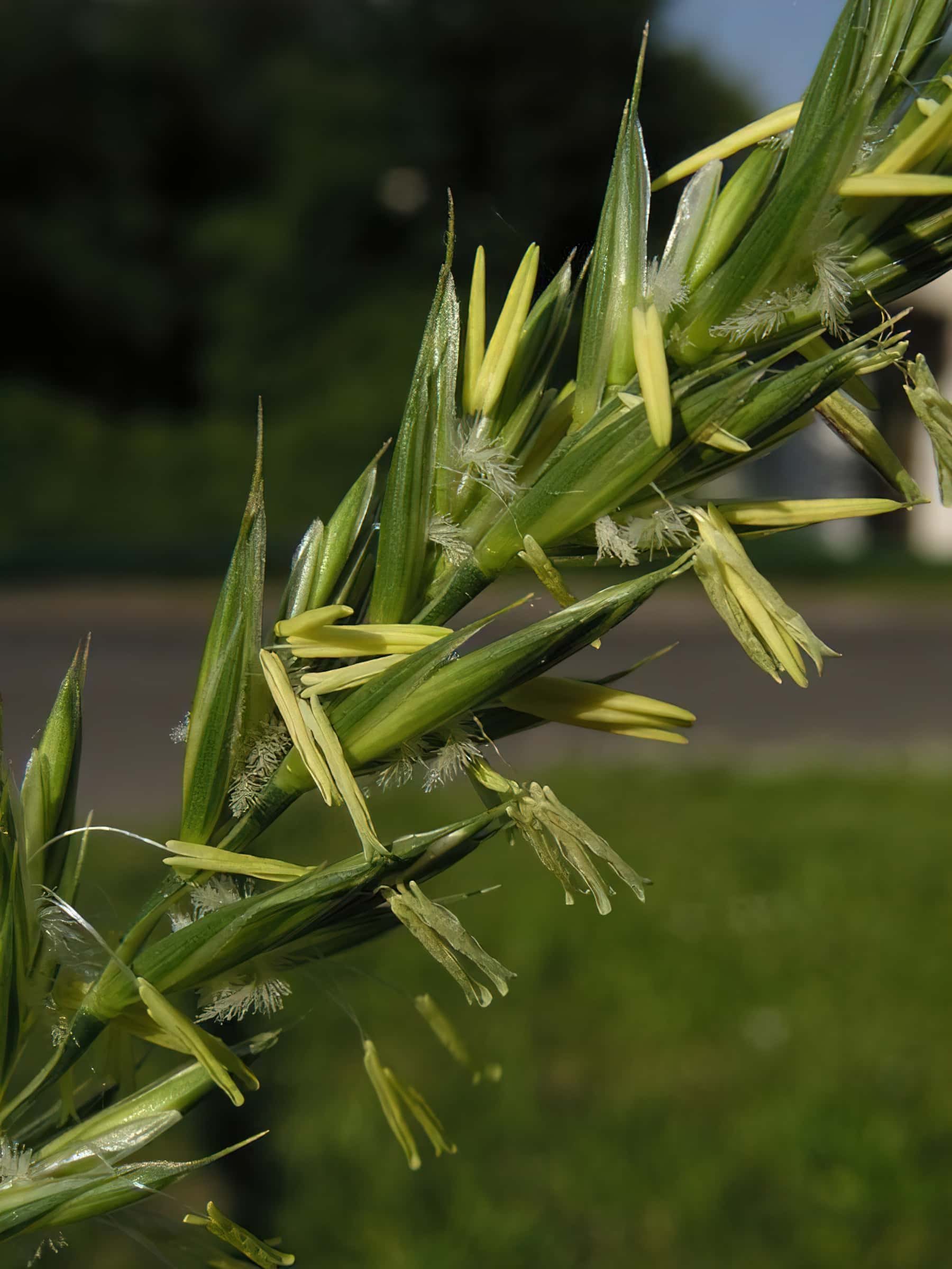Vytrvalá tráva s poléhavým, bledým oddenkem a mnohými výběžky. Vytváří skupiny nebo rozsáhlé porosty. Stébla jsou 20–150 cm vysoká, přímá, na bázi příležitostně zakřivená, hladká. Listy jsou matně zelené, často modrozeleně ojíněné. Listové pochvy jsou na hřbetní straně zaokrouhlené, hladké, lysé, u spodních listů jsou chlupaté. Jazýček je krátký a blanitý. Čepele jsou zašpičatělé, až 30 cm dlouhé a až 10 mm široké, krátce chlupaté.