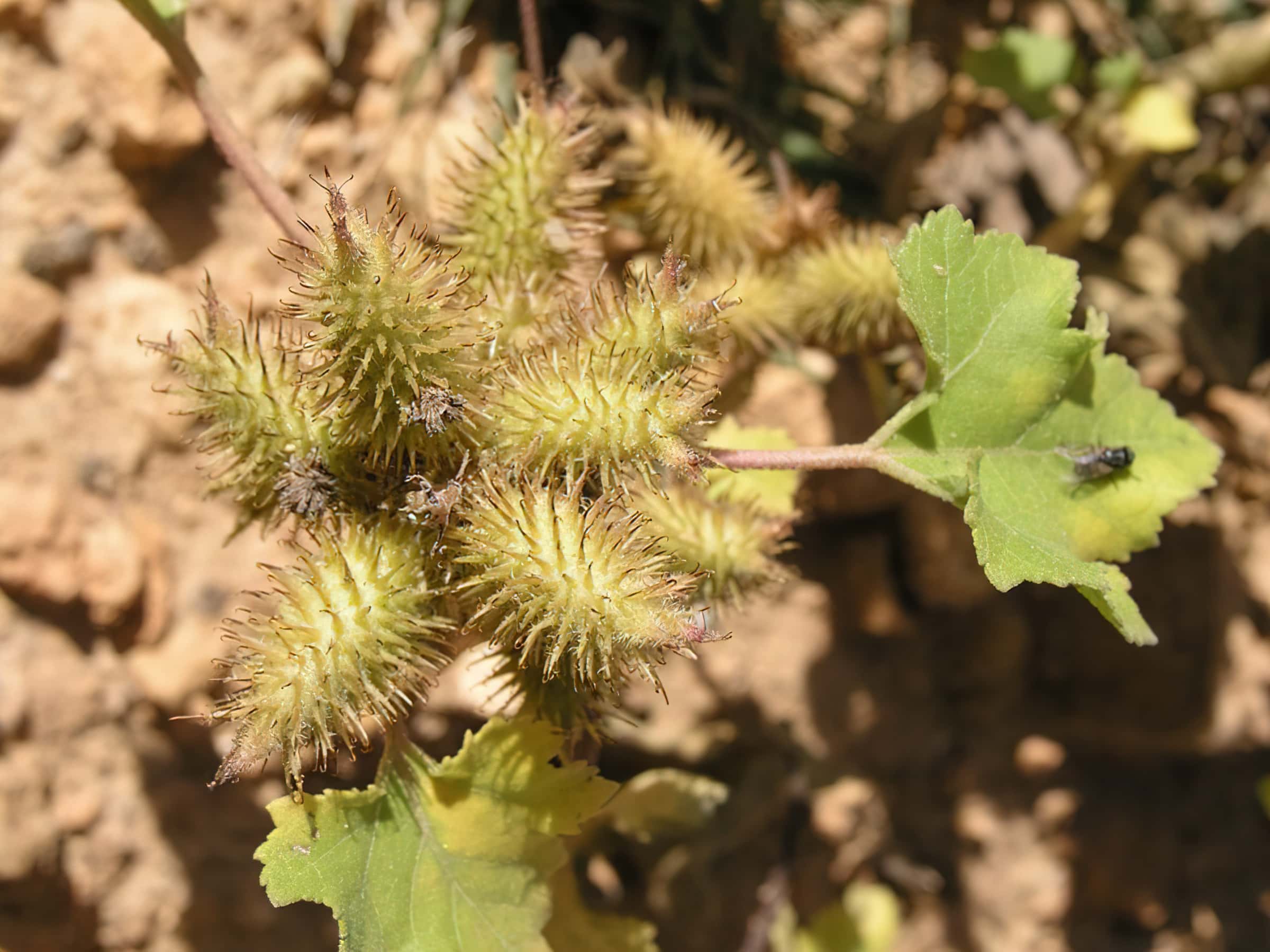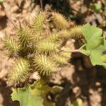 Jednoletá, šedozelená hluboce kořenující bylina. Hlavní kořen je dlouhý až 120 cm. Lodyha je přímá, 20–120 cm dlouhá, větvená, oblá, hustě krátce přitiskle chlupatá, krátce čárkovitě skvrnitá. Listy jsou střídavé, dlouze řapíkaté, až 20 cm dlouhé, chlupaté. Čepel je hrubě pilovitá, srdčitě trojúhelníkovitá, 3–5laločná až celistvá.