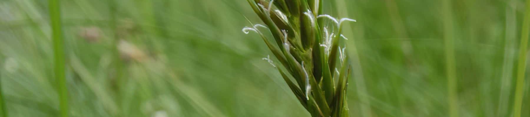 Kvete od dubna do června. Laty má klasovité, silně stažené, podlouhle oválné, 1–10 cm dlouhé, zelené nebo purpurové. Plevy má čtyři, tyčinky pouze dvě (místo obvyklých tří). Pluchy mají mohutnou, zahnutou osinu.