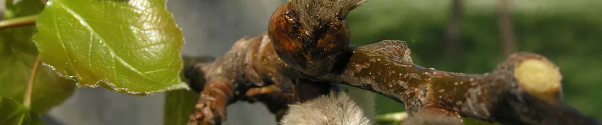 Opadavý strom s řídkou korunou, dorůstající výšky 25–30 m. Kmen je zřídka rovný, většinou nakloněný. Má hladkou, poněkud lepkavou, zelenošedou kůru. Pupeny jsou střídavé, dlouze přišpičatělé, lesklé. Květní pupeny jsou větší než listové, vejčitě kulovité. Listy jsou střídavě postavené, 3–10 cm dlouhé, okrouhle vejčité, tupě zubaté nebo mělce vykrojené. Mají zmáčklý, dlouhý řapík.