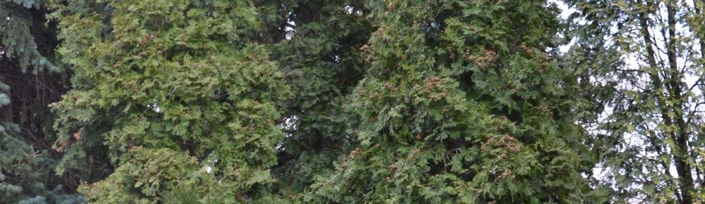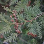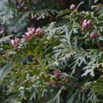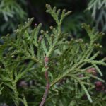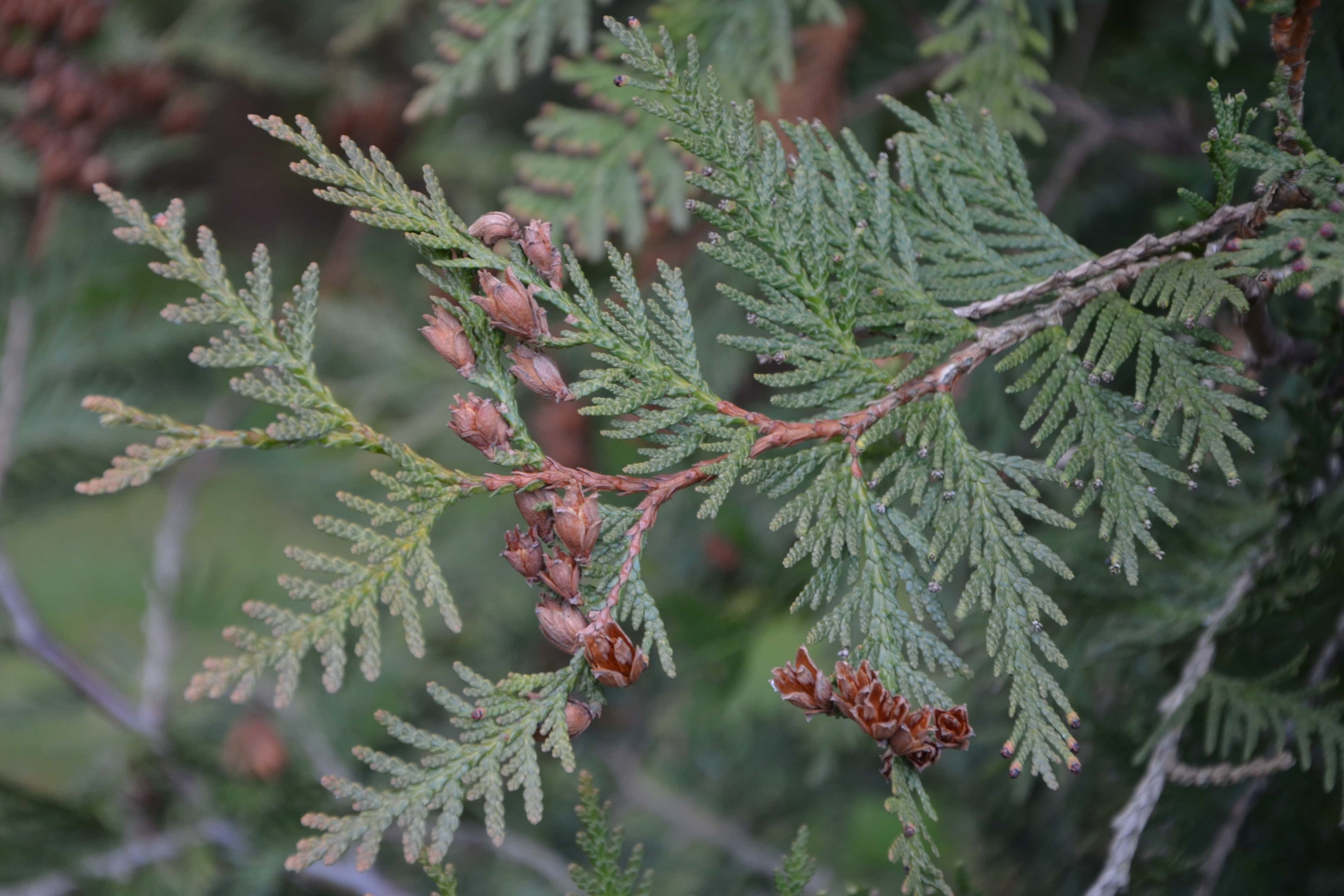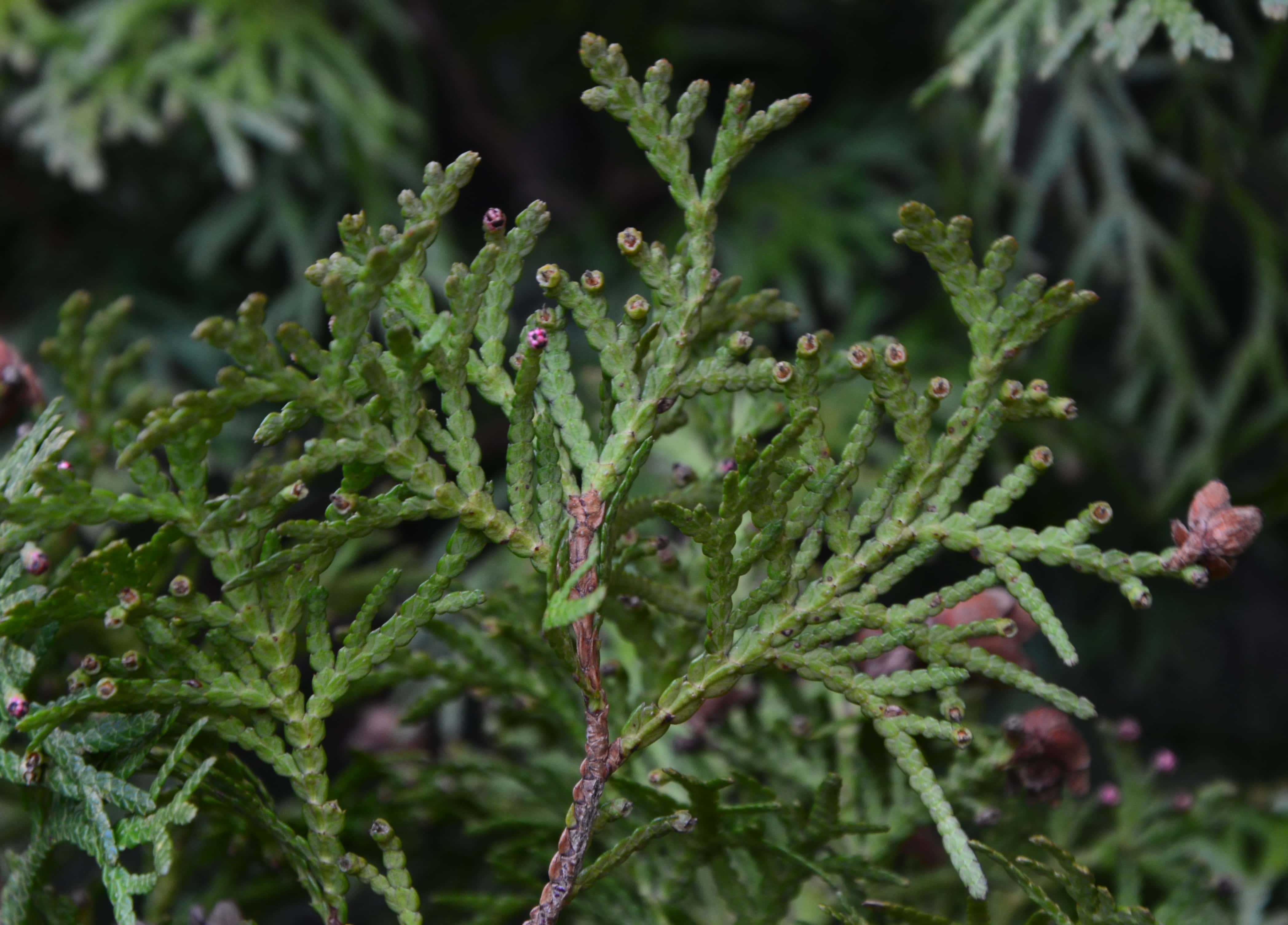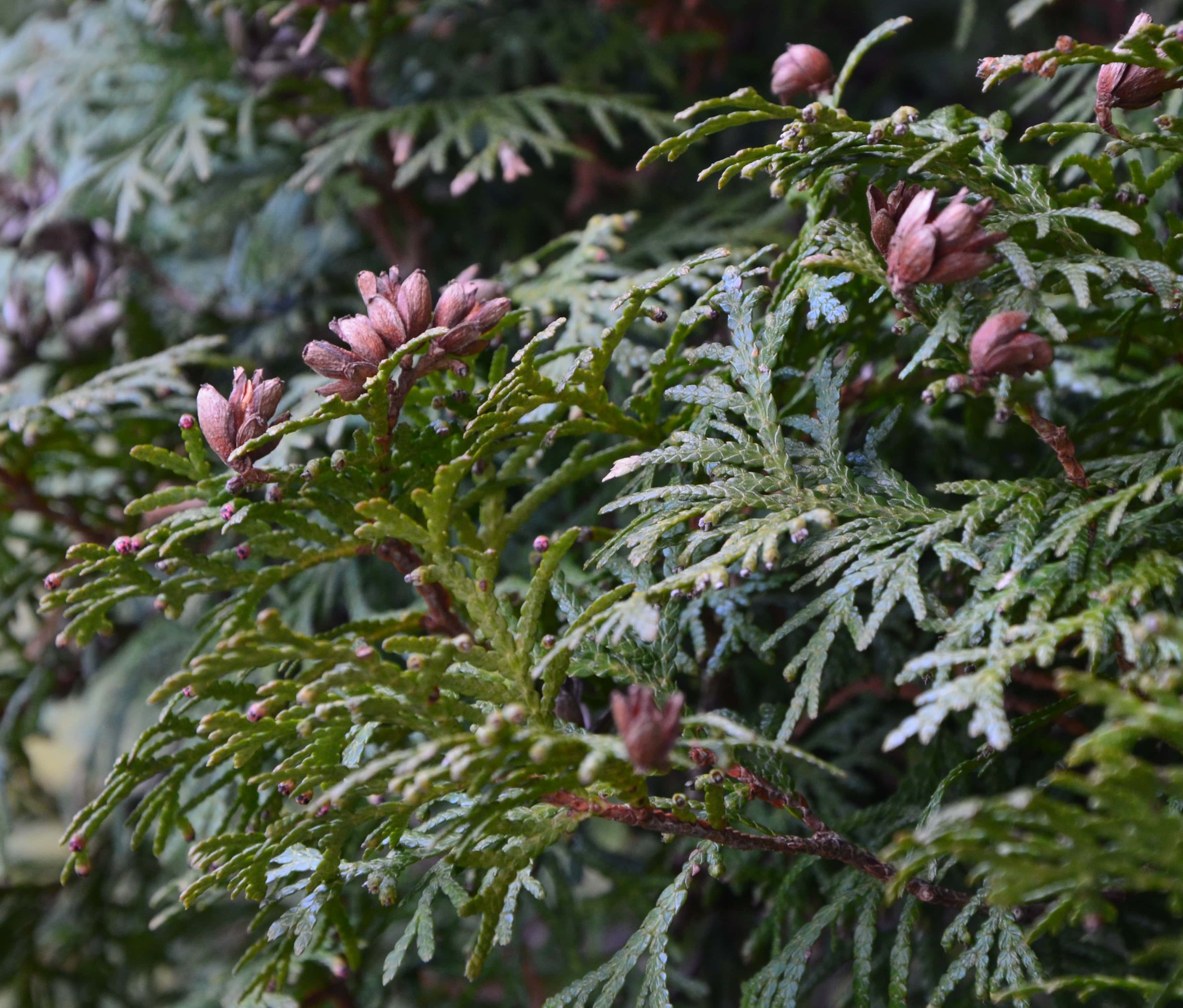 Strom, známý pod lidovým označením túje, dosahuje výšky 15–20 m. Kuželovitá koruna se ve stáří mění na vejčitou. Kůra je červenohnědá, odlupující se v podélných pruzích. Větévky jsou ploché, vodorovně rozložené. Listy jsou šupinovité, výrazně zploštělé, až 5 mm dlouhé, svrchu tmavě zelené, ze spodní strany žlutozelené. V zimě se mohou zbarvovat do hněda.
